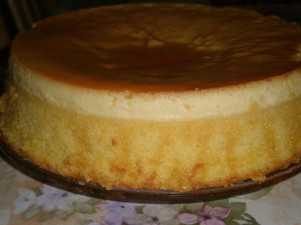 - يُصب هذا الخليط على طبقة الكراميل السابق وضعه في الصينية.